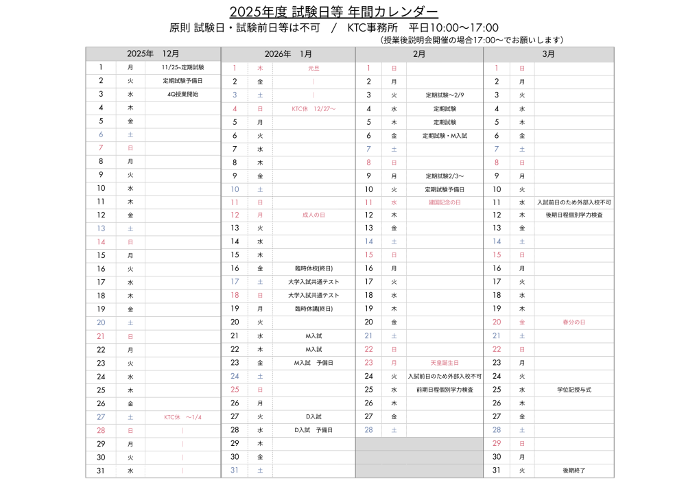 ▶学内企業説明会申込用紙 2025年度年間カレンダー(試験等 開催不可日)